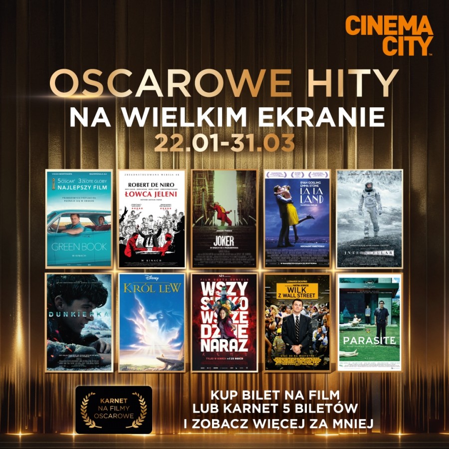 Odliczanie do rozdania nagród Akademii Filmowej właśnie się rozpoczęło, a tymczasem na ekrany Cinema City powróciły oscarowe hity wszech czasów. To idealna okazja, by przypomnieć sobie oscarowe klasyki i nagradzane hity ostatnich lat na dużym ekranie, tuż przed galą rozdania Oscarów. Wśród nich m.in. kultowego „Łowcę jeleni” czy oryginalnego „Króla Lwa” z 1994 roku. Na ekrany trafią też przeboje ostatnich lat: „Joker”, „Parasite”, „Interstellar”, „Dunkierka” czy „La La Land” i „Wilk z Wall Street”, „Wszystko wszędzie naraz”. Uwaga, w sprzedaży będą także specjalne karnety, które umożliwią obejrzenie aż pięciu filmów za jedyne 100 zł. Poznajcie szczegóły!