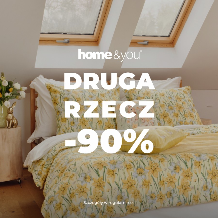 Wiosenne odświeżenie wnętrza w super cenie? Odwiedź sklep home&you! Trwa promocja druga rzecz -90%. Szczegóły w regulaminie i na home-you.com.